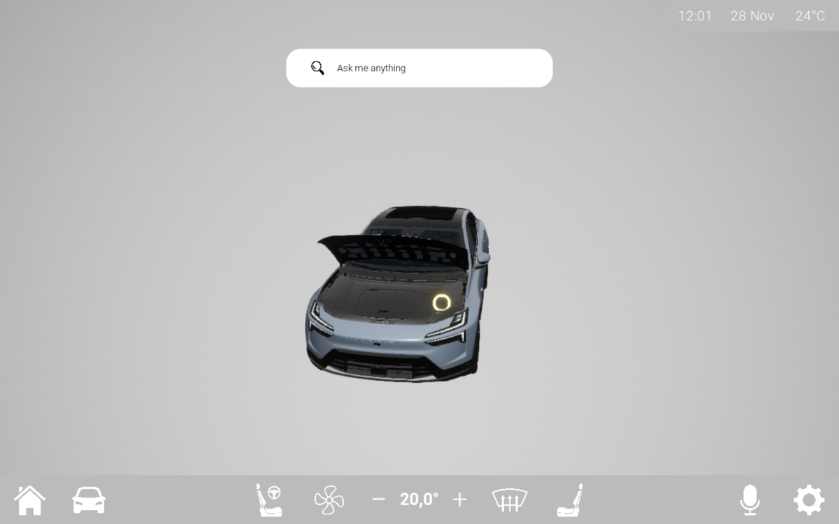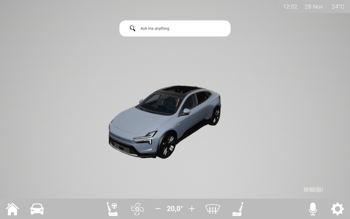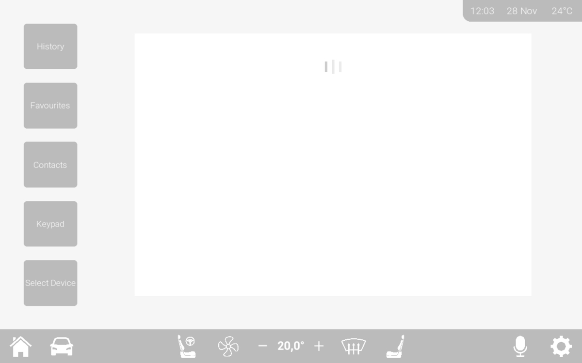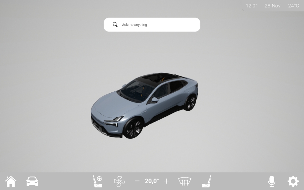 The application was enhanced through integration with Arduino, enabling live sensor feedback and physical button interactions. I implemented custom UI themes based on environmental lighting, simulated airflow animations, Bluetooth connectivity, and web-based APIs like Google Maps and SoundCloud. The system was designed with scalability, usability, and realistic functionality in mind, and successfully tested on a tablet with the whole intention that this could be applied to a real automtove WX scenario.